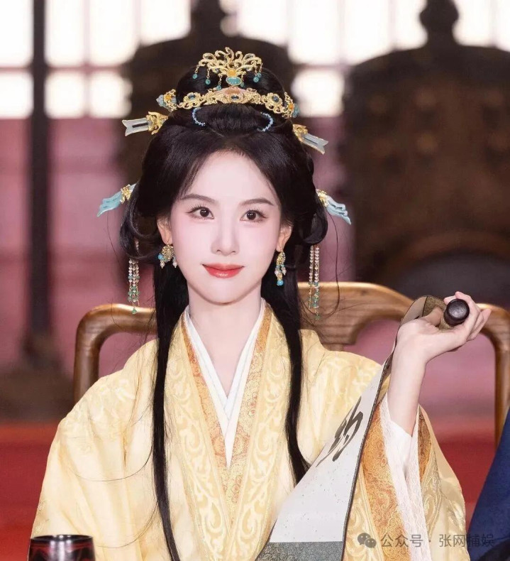 剧中她穿的黄色宫装,衬得她明媚又险诈,看似是深宫中能从容荡秋千的娇俏公主,眼底却藏着复仇的狠劲和破局的颖慧——同款雾鬓发冠,戴在她头上,莫得冗余的艳俗感,反而突显了她的冰寒骨相,哪怕妆造和别东说念主撞款,一个抬眼、一个垂眸,都是更生者的泄漏与断然,妥妥的“握棋者”气场,把“外在娇俏,内心狠绝”的反差感拉满。